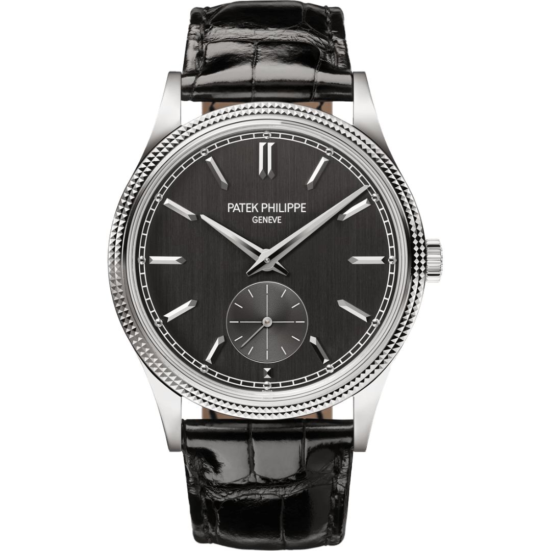 Pre-Owned Patek Philippe Calatrava 6119G-001 exudes timeless elegance in a 39mm white gold case. Powered by a self-winding movement, its sophisticated grey dial features a small seconds sub-dial, offering precise and graceful timekeeping. Paired with a shiny black alligator strap, this Calatrava combines classic design, refined craftsmanship, and everyday wearability, making it a distinguished choice for collectors who appreciate understated luxury and technical excellence on the wrist. This watch comes complete with the original box and papers. Time remaining on the manufacturer’s warranty!